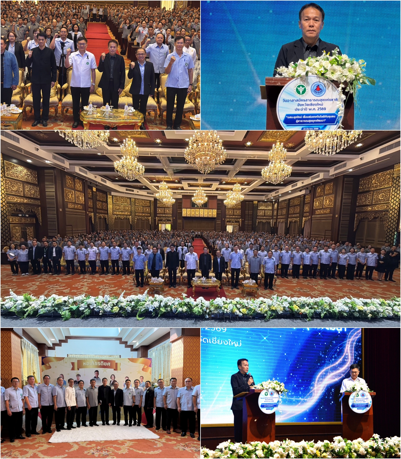 วันที่ 23 มี.ค. 69 ที่ โรงแรมคุ้มคำ จังหวัดเชียงใหม่ นายศิวะ ธมิกานนท์ รองผู้ว่าราชการจังหวัดเชียงใหม่ เป็นประธานเปิดงานวันอาสาสมัครสาธารณสุขแห่งชาติ ประจำปี 2569 ภายใต้แนวคิด “อสม.ยุคใหม่ เชื่อมต่อเทคโนโลยีกับชุมชน สู่สาธารณสุขยุคพัฒนา” ซึ่งจัดขึ้นโดยความร่วมมือระหว่างสมาคมอาสาสมัครสาธารณสุขจังหวัดเชียงใหม่ และสำนักงานสาธารณสุขจังหวัดเชียงใหม่ เพื่อยกย่องอาสาสมัครสาธารณสุขประจำหมู่บ้าน (อสม.) ที่เสียสละทุ่มเทดูแลสุขภาพประชาชนในชุมชนมาอย่างต่อเนื่อง โดยมี นายแพทย์สาธารณสุขจังหวัดเชียงใหม่ พร้อมด้วย ผู้บริหาร เจ้าหน้าที่สาธารณสุข และ อสม. จากทั่วจังหวัดเชียงใหม่เข้าร่วมกว่า 500 คน