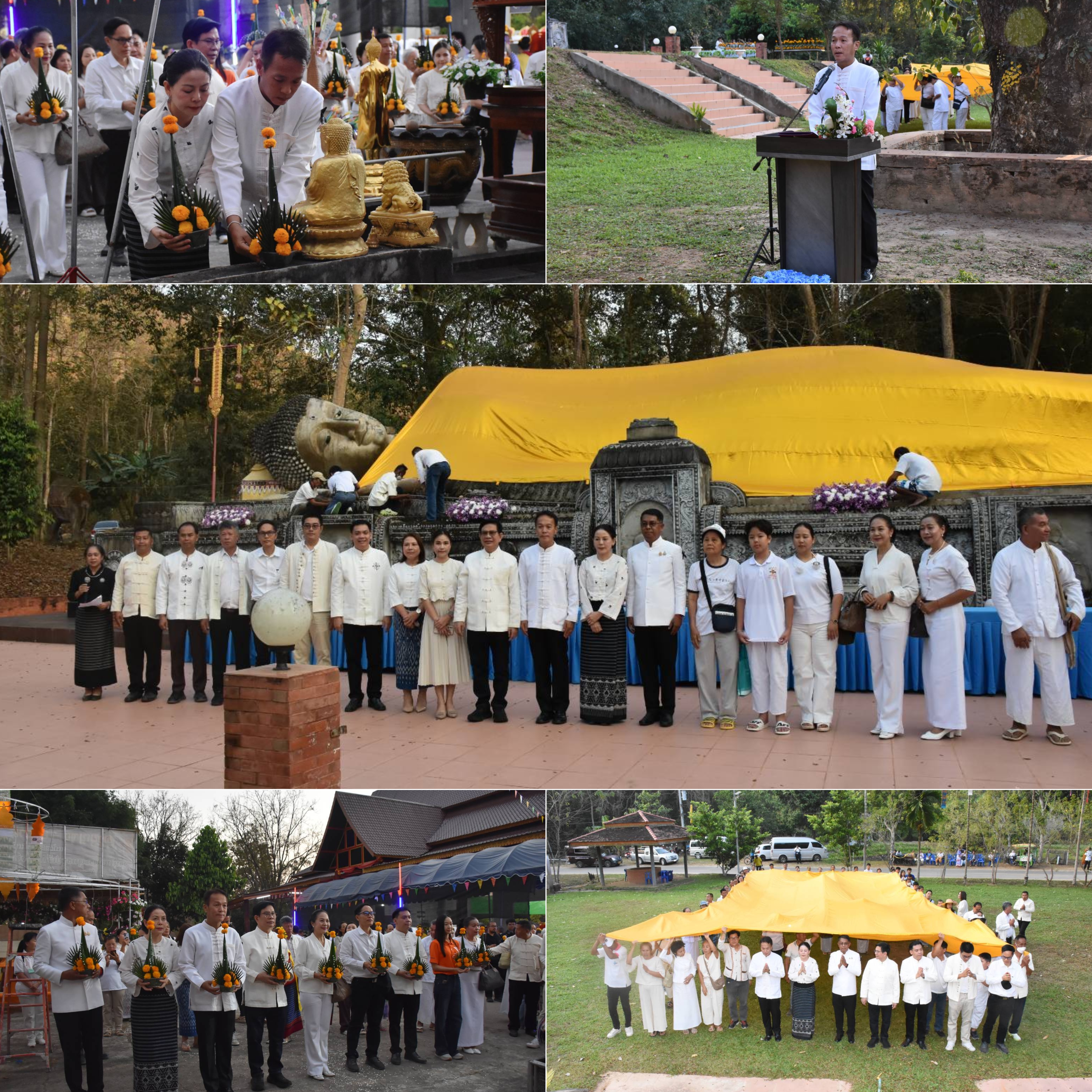 วันที่ 2 มี.ค. 69 ที่วัดดอยแท่นพระผาหลวง ตำบลป่าไผ่ อำเภอสันทราย จังหวัดเชียงใหม่ นายศิวะ ธมิกานนท์ รองผู้ว่าราชการจังหวัดเชียงใหม่ เป็นประธานเปิดงานประเพณีน้อมเกล้าไหว้พระเจ้าทันใจบิ่นหลังต๋ำ(พระนั่งหันหลัง) ปิดทองหลังพระ ห่มผ้าพระนอน สรงน้ำแท่นพระผาหลวง โดยมี นางวารีญา แสนศรี ธมิกานนท์ รองนายกเหล่ากาชาดจังหวัดเชียงใหม่ หัวหน้าส่วนราชการ หน่วยงานในอำเภอสันทราย และประชาชน เข้าร่วมงาน